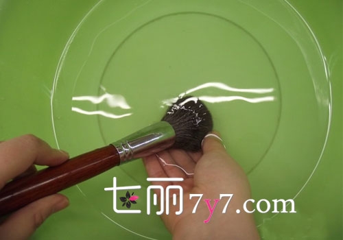 一、首先将化妆刷的刷头打湿,充分湿润。