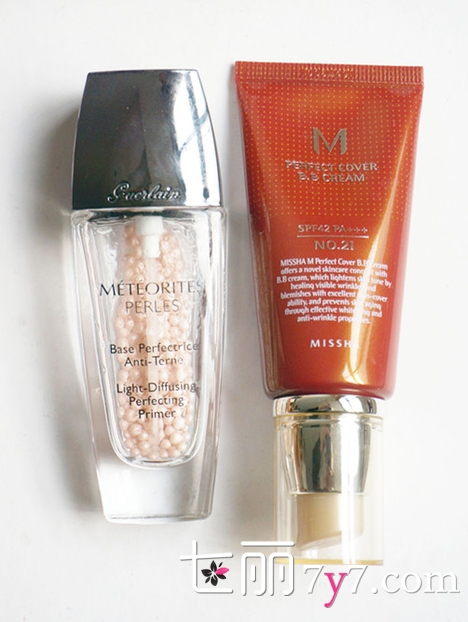 STEP1:想要自然裸妆,底妆部分得做好,韩国MM的脸上都是很有光泽的,所以这次的底妆按照1:1的比例来混合涂抹脸部,打造完美肌肤。