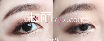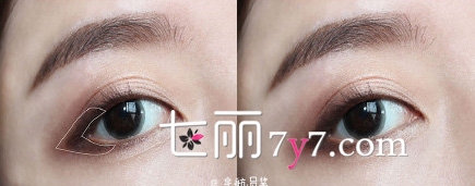 步骤5再在眼尾涂抹棕色眼影,这次要注意范围不能太大,隐约可见即可。