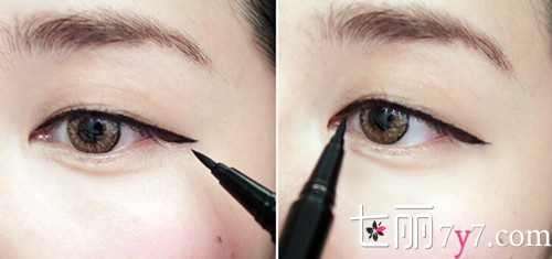 Step5:把睫毛夹翘后用纤长型的睫毛膏,轻轻的涂上、下睫毛(纤长型的睫毛膏涂起来能根根分明,让眼睛看起来更有神);
