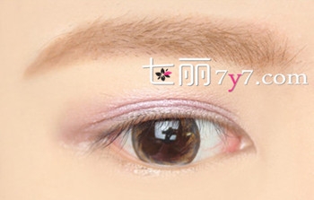 Step2:眼影部分,珠光浅紫色真个眼窝进行打底,再用深紫色眼影在眼尾晕染开来;