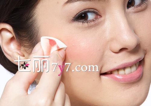 第二步:用海绵的另外一面,另外一面要确保是干净的,然后轻轻的晕染腮红的边缘,这样边缘会变得更加自然,整个妆感也更加的通透。