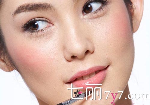 第四步:最后以唇刷沾透明唇蜜迭擦在双唇,可以让唇妆更水嫩,维持润泽感。