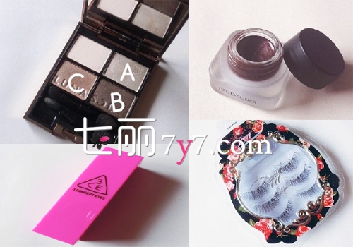 第五步:用眼线胶画好内眼线,贴上一副自然的假睫毛。