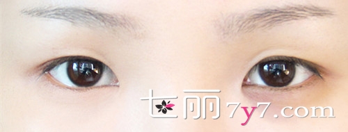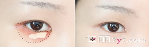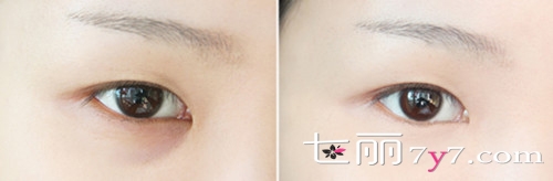 妆前(左图)的眼部的黑色素沉淀使美眉眼睛看起来没有精神,妆后(右图)经过一番化妆后,黑眼圈几乎看不到了,眼睛也显得神采奕奕了,让我们一起来学习下吧!