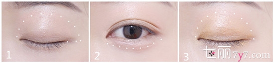 Step2:再用乳黄色的眼影轻刷在下眼睑处能起到提亮眼睛的效果;