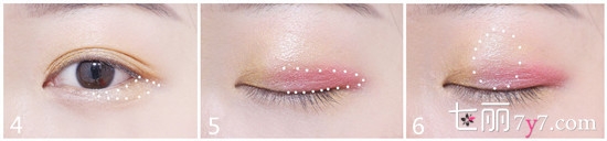Step5:蘸取粉色眼影涂在上眼皮的眼尾位置;