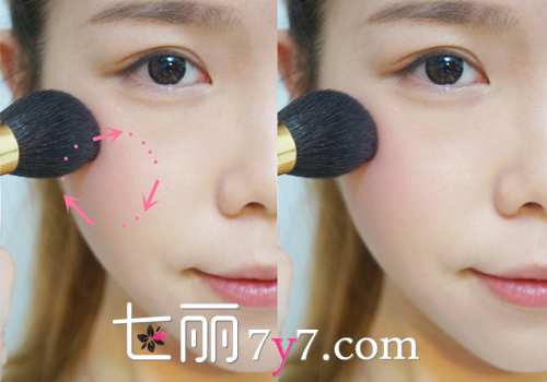 一些敏感的肌肤的姐妹们脸部经常会泛红,有的皮肤比较薄的人红血色会比较明显。那么这种肌肤的人,在画好底妆之后选择粉紫色的腮红轻轻刷一层,可以让肌肤看起来通透亮白。