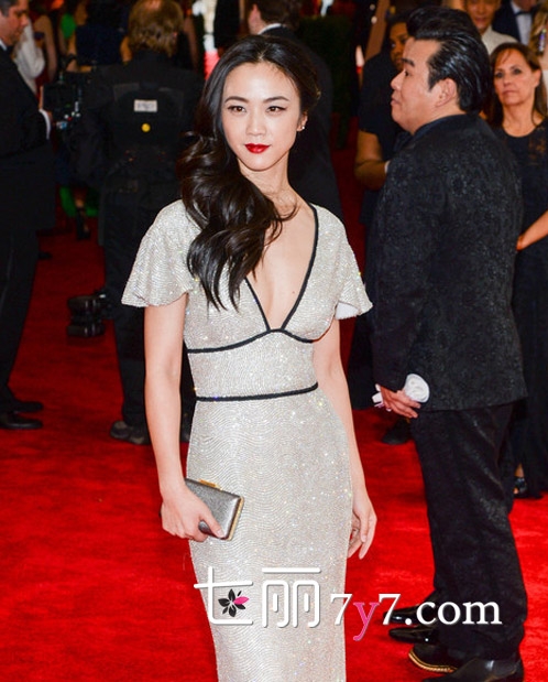 汤唯的妆容一直走清淡气质路线,这次也一样,健康的肤色,搭配的是清淡的眼妆,细细的眼线不刻意不做作,更凸显了她淡雅的气质。唯一重彩的地方是红唇,这是整个妆容的点睛之笔,轻松hold住红毯这种大型活动。