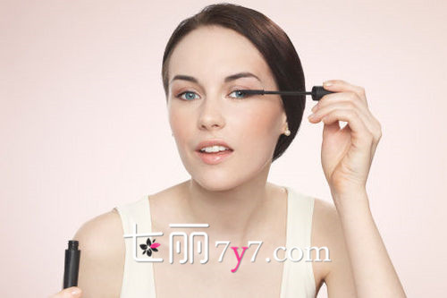 用睫毛夹将睫毛夹翘,然后将刷头对准睫毛根部,一边轻轻转动一边刷涂向睫毛稍部。