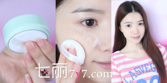 3、涂上一层散粉,打造今夏最流行的雾面妆感。