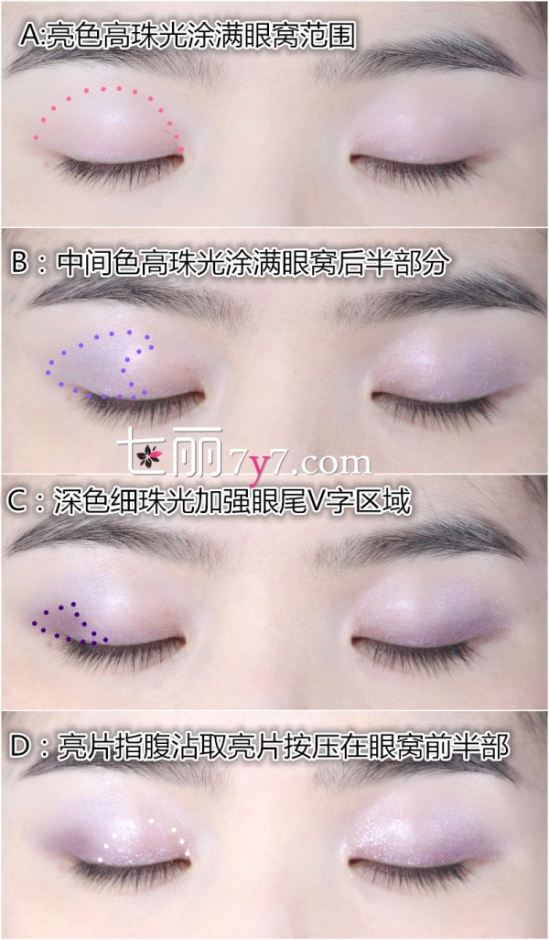 4、用紫色的四色眼影画彩妆,如图,ABCD四个颜色。