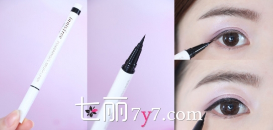 6、画上一条眼线,眼尾不用上扬,自然延长3mm. 涂上一层睫毛膏,让睫毛更加卷翘。