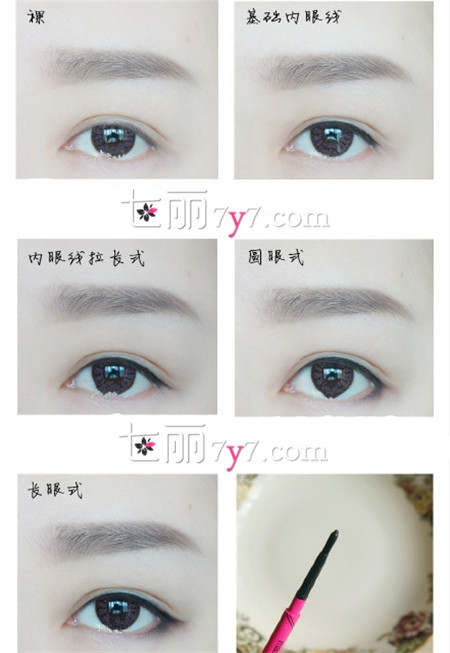 圆眼式:内眼线不变,带出下眼尾,适合喜欢无辜感妆容(垂眼妆)的萌妹子。