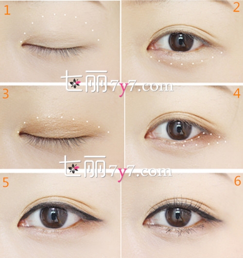 Step2:蘸取珠光白的眼影在下眼睑处进行提亮;