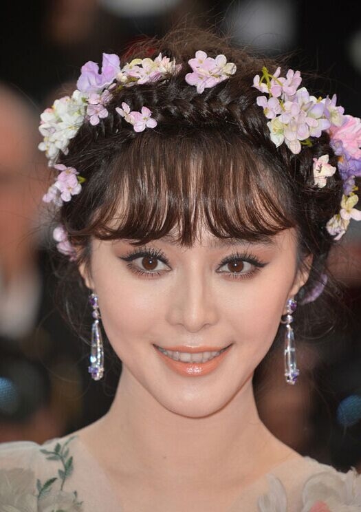 范冰冰这次又惊讶了所有人,花仙子的造型让她仙气十足,软萌的空气刘海,配上细长的上扬眼线,根根分明的睫毛,采用大地偏橘色的眼影,同色系的口红,整个妆面清透动人。当然小巧的脸蛋也是这款妆容必不可少的一个条件。