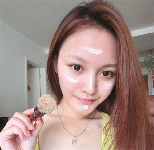第一步:BB霜点涂在脸上,使用化妆刷均匀刷开,底妆真的很重要,不要求有多白,肤色均匀最重要。