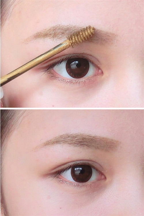 第二步:使用贴合发色的染眉膏,先顺着眉毛刷,再逆着眉毛刷一下,眉毛就基本搞定了。