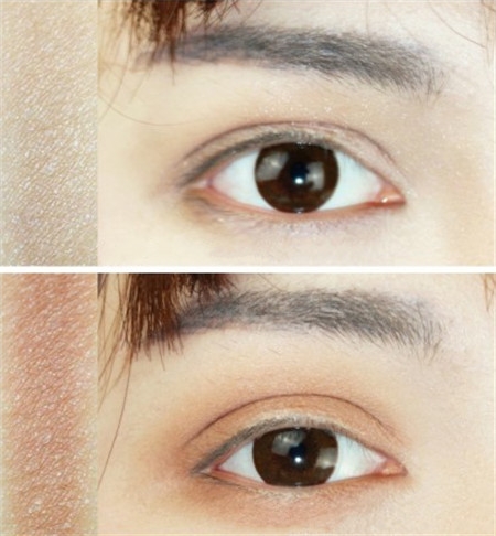 第三步:下眼线有一道要画在黑眼珠的内眼睑处,颜色不要太深,然后用珠光白色提亮眼头和一般的下眼睑。