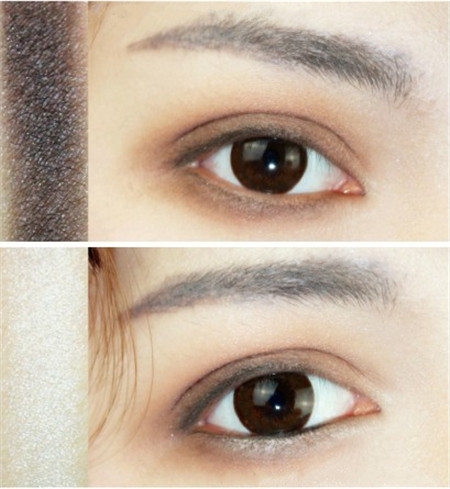 第二步:利用哑光眼影在眼窝处晕染,可以体现出眼神的深邃感,又不显肿。