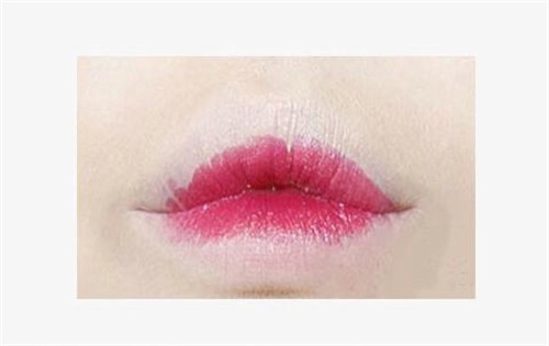 第三步:从中间向两边涂满大约二分之一的区域即可。不熟练的MM可以用指腹蘸取唇膏点涂。