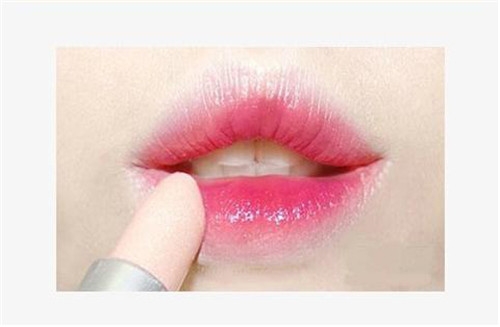 第六步:使用透明润唇膏滋润双唇。这款渐变咬唇妆完成。
