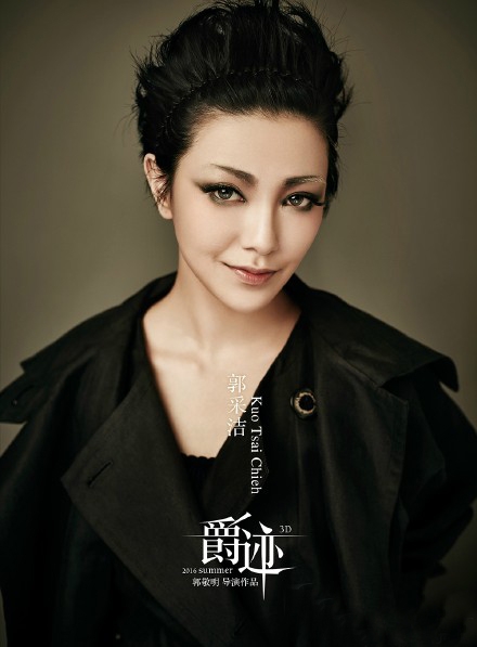 郭采洁的眼妆是比较重的,眉毛上挑,而且末端的白色的,气场十分强大。眼妆犀利而有神,张扬上挑的眼线,从眼头一直到眼尾,下眼线也加重。淡淡的腮红,干净利落的气场显露无疑。
