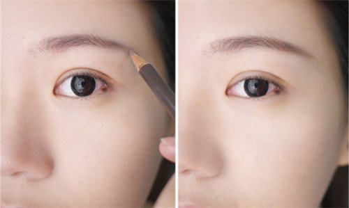 第二步:涂抹完底妆后,画出立体眉形。用眉笔顺着眉毛的生长方向填补眉毛缝隙,我的眉毛比较短,所以还会用眉笔在眉尾处拉长。立体的眉形会让整个人看起来更有精神,所以这一步骤可不能忽视。