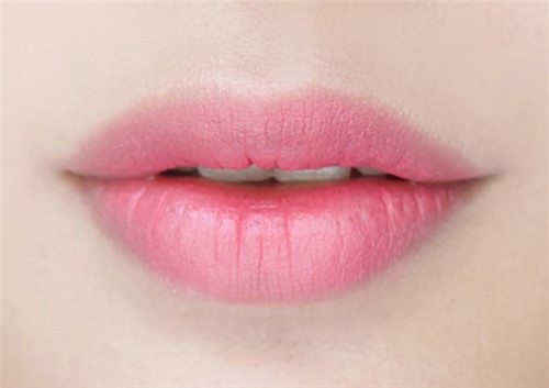 第五步:唇部涂抹上暖粉色唇膏,整个妆容完成。