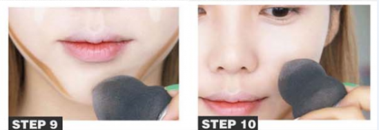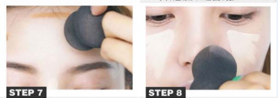第七步:使用海绵用修容粉来晕染之前标示的部位,以轻拍方式轻轻拍匀。