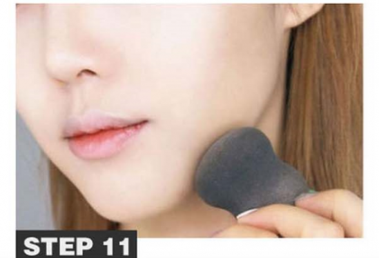 第十一步:刷上修容粉的下巴线条,用海绵从脸的内部往外轻拍,和额头的位置自然连结起来,并自然消除界限。