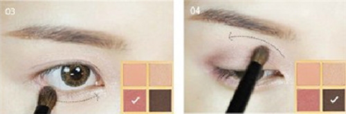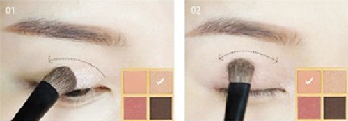 第二步:再用眼影刷蘸取图中眼影色叠加在之前的眼影上,注意过渡要自然。