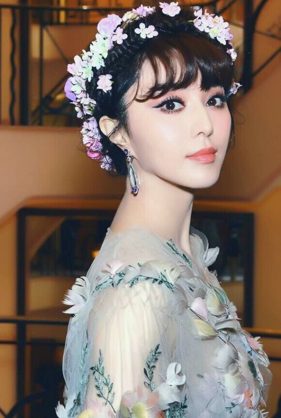 范冰冰的五官精致得无可挑剔,这款在戛纳亮相的花仙子妆容,已经惊艳了世人。粉色的眼影,配上颜色各异的花圈发饰,达到了相呼应的效果。唇色选择了珊瑚色唇色,楚楚动人。眼妆的眼线向外拉长。难怪李晨都被俘获了。