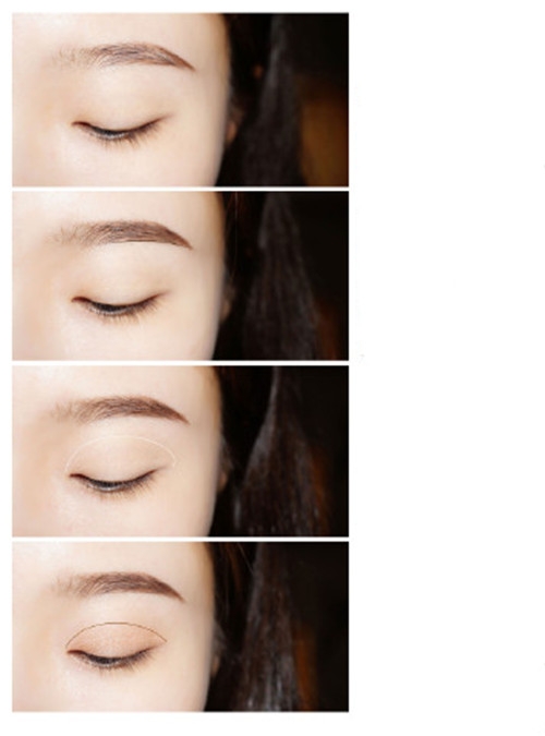 第四步:中号帅蘸取眼影由睫毛根部向上刷开,范围要比上一步小。