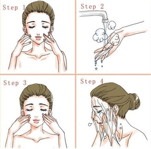 step4:当卸妆蜜完全乳化后,用大量清水冲洗干净即可。