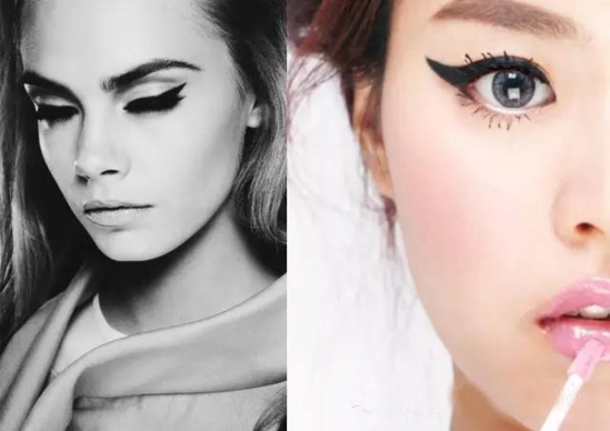 外眼角眼线(延长眼线),能够让眼睛显得更长更妩媚:可以上下眼线连接,也可以直接化上眼线。非常适合中国人,因为中国人的脸颊比较宽,此眼线可以帮助协调脸型,让脸型更加完美。