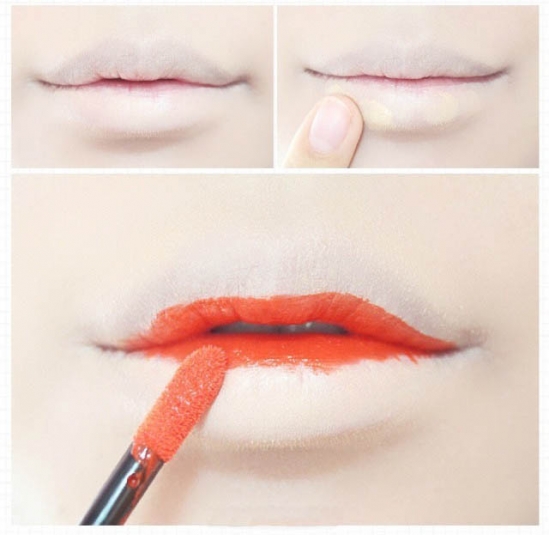 可以用之前用的粉底对唇色进行遮盖,也可以使用唇部专用的遮瑕唇膏进行遮盖,用手指或者唇刷沾取遮瑕产品均匀的涂抹于唇部,到看不见本来的颜色为准,唇部比较干燥的妹子们可以适当的在遮盖工作开始之前进行唇部滋润。