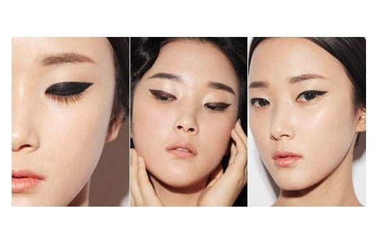 超模们的眼形都是十分典型的丹凤眼,眼尾很长,没有内双,不化妆的时候,上眼皮还会略有点肿肿的、过重的感觉。配合这样的眼型,眼线则成为的至关重要的眼妆重点之一,无论是隐形的内眼线,还是上挑的猫眼线,都让小小的丹凤眼显得更加有神。