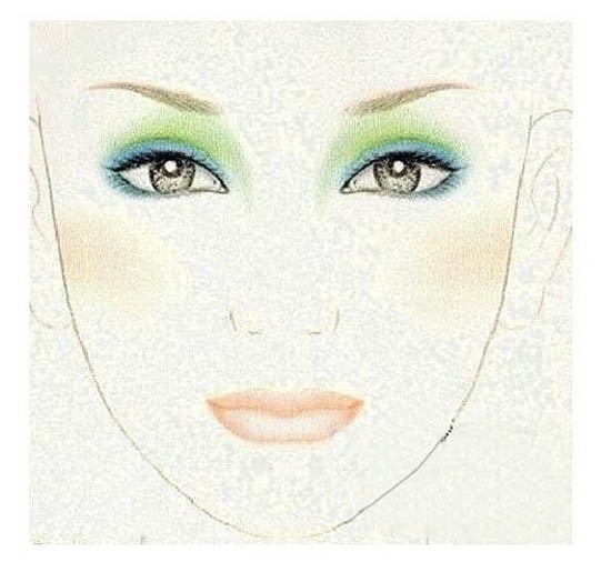 绿色和蓝色的眼影属于夏天会很喜欢的清爽色系,两者的搭配能给人带来一种生机勃勃的感觉;可以用浅绿色眼影大面积的铺满眼窝,在贴近眼睑的地方用蓝色眼影,向外晕染开来。
