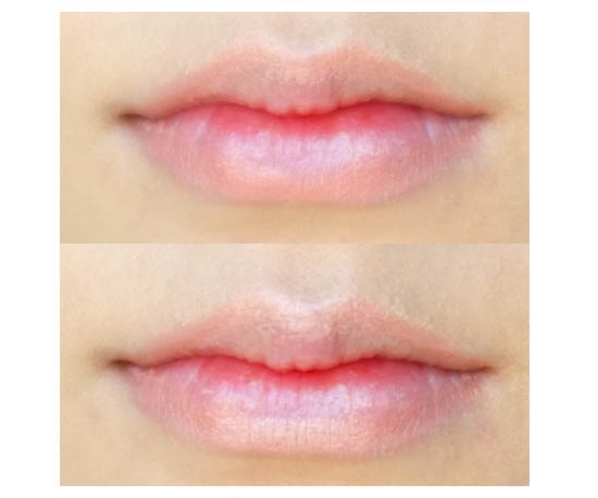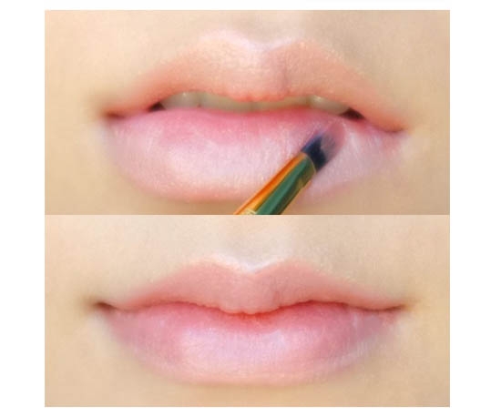 高光和唇线都画完之后,可以用用无名指轻轻把唇线向内推开。