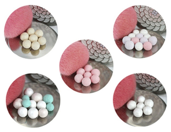 脸色有些黄黄的姐妹们可以试试这个方法的,拿出5颗紫色、5颗白色和2颗红色粉球,用刷子刷均匀,然后轻轻刷抹在脸上,肤色一下子中和了,紫色对于黄色皮肤的姐妹们是必不可少的绝对的色彩科学。