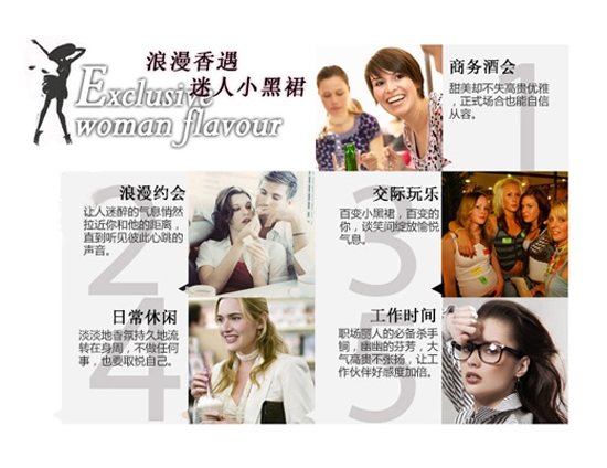 每个女人的一生都会有一件美丽的小黑裙,也可以拥有一瓶法国娇兰的小黑裙香水,它的味道走遍巴黎的大街小巷,处处留下神秘的裙角芬芳!这位不同寻常的香水使者将一切她触摸过的东西都变换成一个黑、白和粉色的世界,让人联想到其香水瓶的光彩影像。