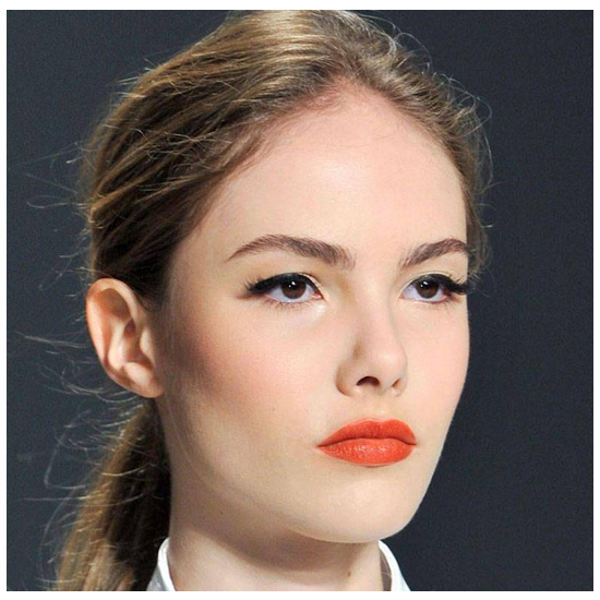 比较适合鲜艳的橘色等色彩明亮的唇彩,感觉皮肤白皙的姐们涂什么都好看,所以大胆的使用橘色口红吧。唇部中央涂抹得浓一些,周围部分则淡淡地晕开,造就楚楚动人的轻柔娇唇。