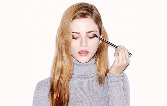 用深棕色的眼影,用眼影刷,把颜色晕染外眼角。通过将其融合,加强深度。