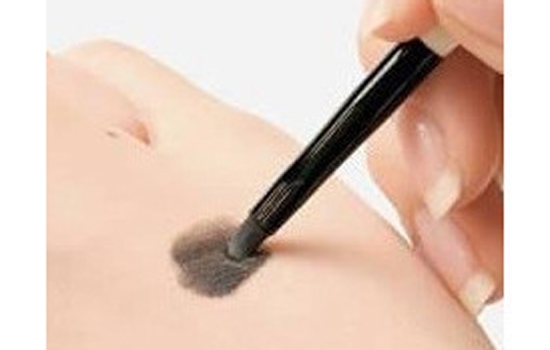 用眼线刷取一点眼线膏,在手背上涂抹均匀,用来调整刷毛方向及眼线膏用量。