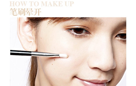 用笔刷将遮瑕膏往旁边晕开,再以手指轻拍按压,让脸上瑕疵部分保持足量来遮瑕