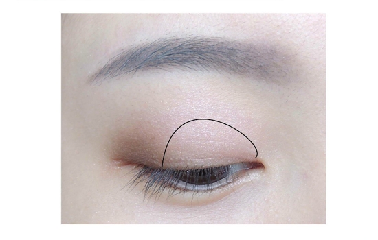 Step02:取粉色眼影涂抹在眼皮前半部分