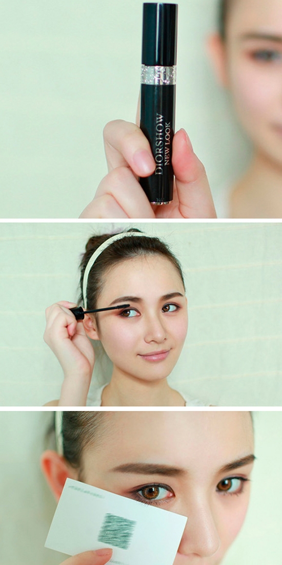 2.刷下睫毛时,名片同样利用到。放在睫毛根部下面,这样刷起来不会刷到下面皮肤。
