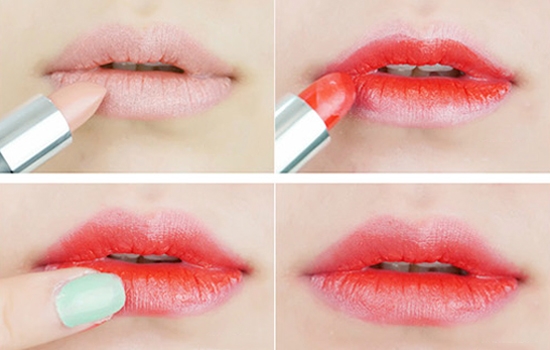 2.在用另外一头的大红色,着重的涂抹嘴唇里测。因为如果要减龄的妆容不建议全涂。涂咬唇妆或者渐变晕染开得都会比较减龄一些。