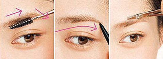 用眉刷顺着眉毛的生长方法把眉毛梳理顺。